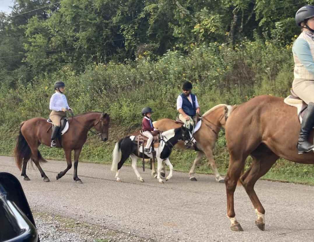He has been very lightly started under saddle and has gone out with the hounds, proving himself tractable, sensible, willing. More curious about life than cautious. He is a brave, happy young lad.