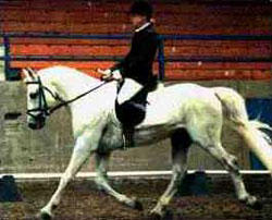 Tre Awain Ginger Blue is a 14.1 hand grey stallion, foaled in 1982, sired by Gilnocky Ard Righ MacDaire, out of Tre Awain Linnet’s Lass. In the 1992 USDF awards, he placed 15 nationally out of 2000 horses at First Level. In the fall of 1995 Ginger Blue returned home after nearly four years in Washington to Missouri where he was born and raised to stand at Three Creek Farm near St. Louis.